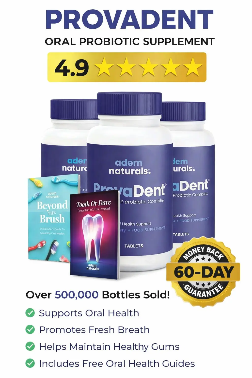 If you are not completely satisfied with ProvaDent within 60 days of receiving it, you can request a refund and we will return your entire purchase amount without any questions.